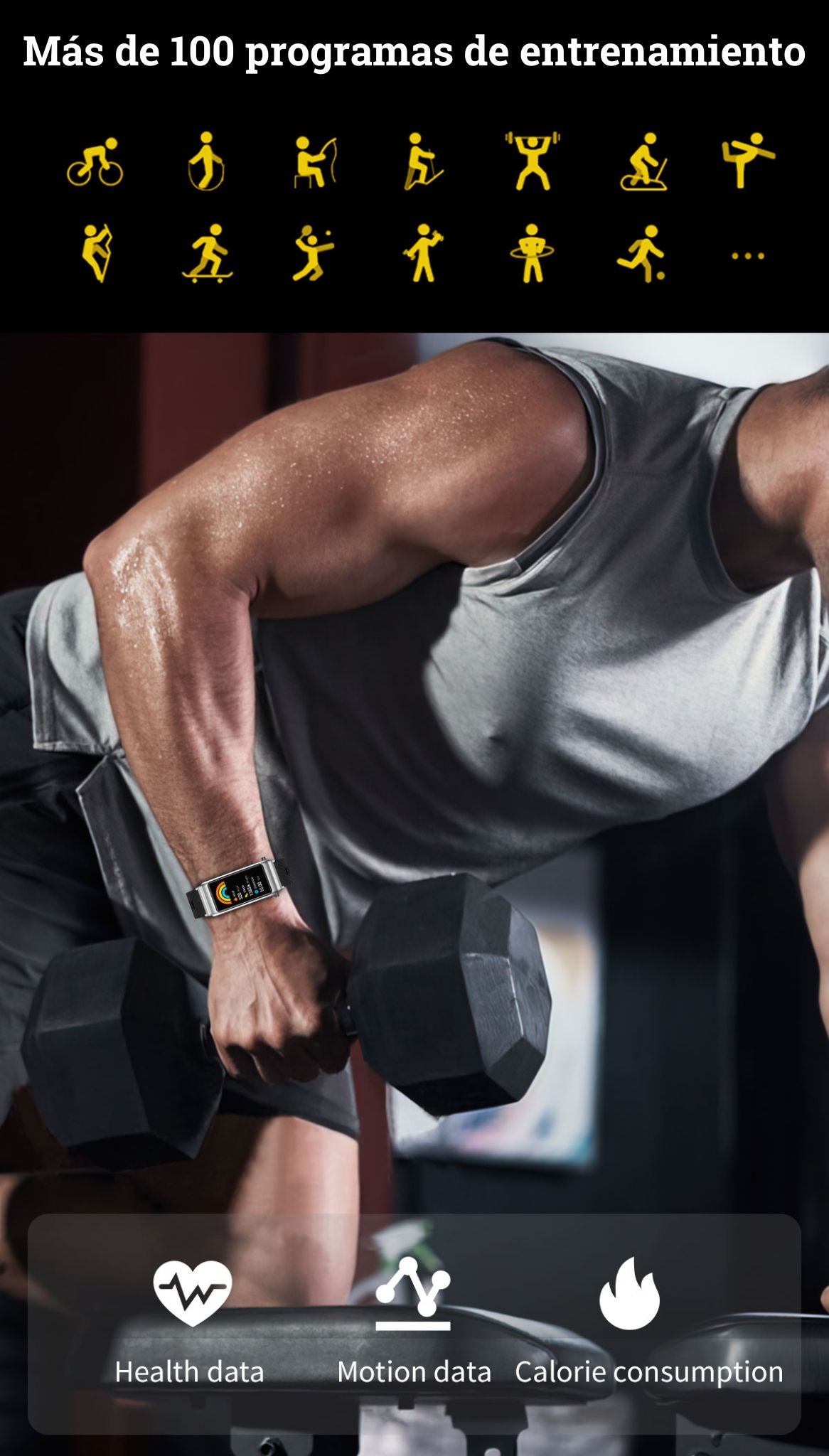 Monitorea los tiempos de ejercicio, las calorías y otros datos en tiempo real. Cuando el usuario hace ejercicio, ya sea caminando, corriendo, trotando o practicando cualquier otro deporte.