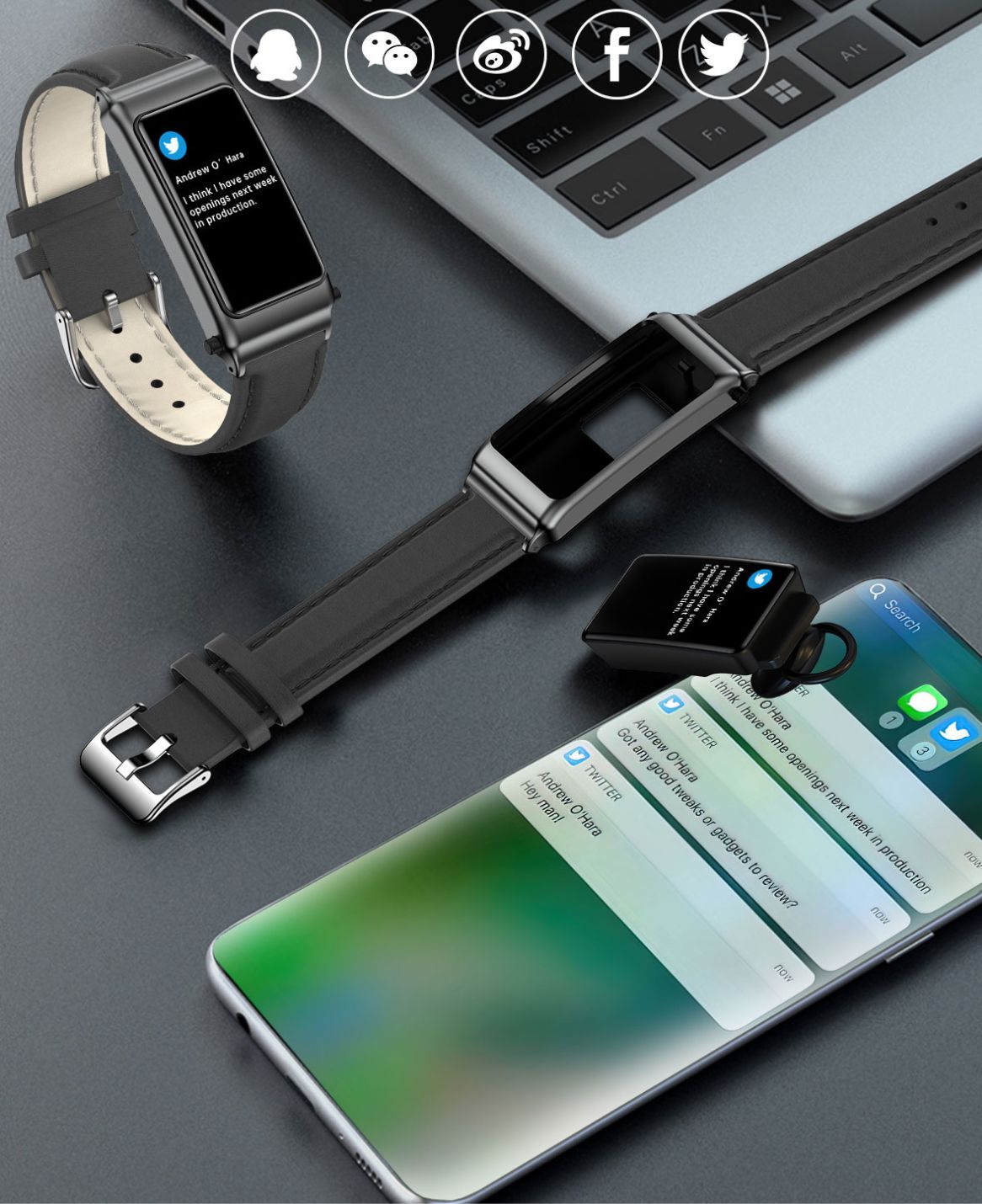 Empareja el casco Bluetooth con la pulsera inteligente. Te permite contestar una llamada telefónica con el auricular en lugar de sacar tu smartphone. Manos libres y aumenta la seguridad al conducir.